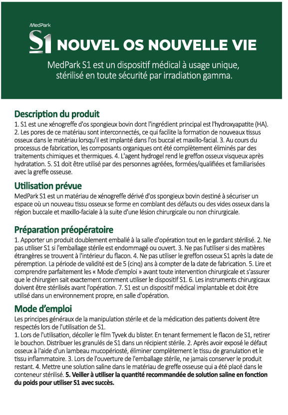 IFU Instructions for Use. S1 Dental_FR Registration date 2026-04-09 09:23:04 FILE [S1 Dental] IFU.005.MP(2.00).FR.CE_web.pdf Previous post COLLA_IT next post BOSS_FR List view