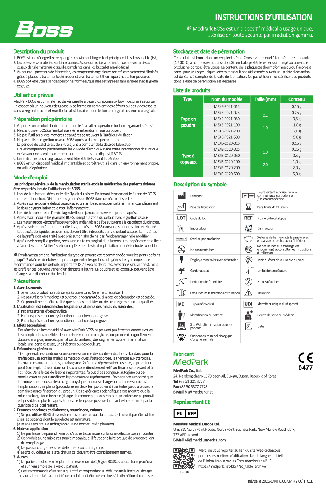 IFU Instructions for Use. BOSS_FR Registration date 2026-04-09 09:27:29 FILE [BOSS] IFU.007.MP(2.00).FR.CE_web.pdf Previous post S1 Dental_FR next post COLLA_FR List view