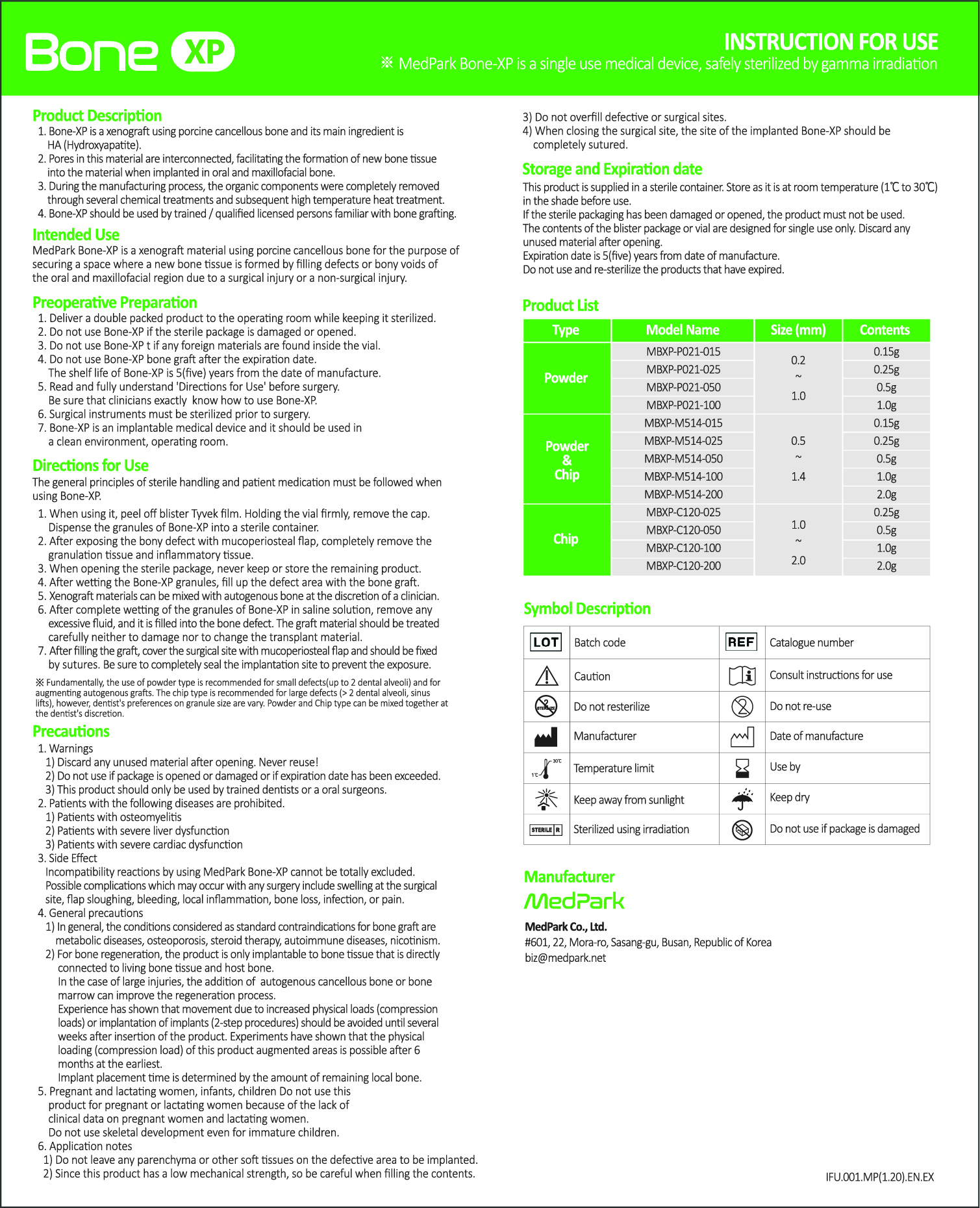 Archive Instructions for Use. BONE XP_EN Registration date 2024-09-07 14:00:05 FILE [Bone-XP] IFU.001.MP(1.20).EN.EX_out_web.pdf Previous post COLLA_DE next post POSS_EN List view